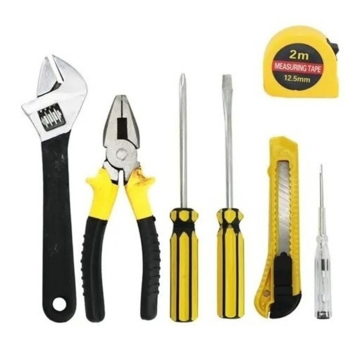 Kit de ferramentas muito útil para o dia a dia seja com algum hobby ou pequenos reparos. Produto fabricado em material resistente, oferecendo durabilidade e praticidade. Maleta com alça para transporte. Maleta de ferramentas com 7 peças. Cabos ergonômicos e antiderrapantes.