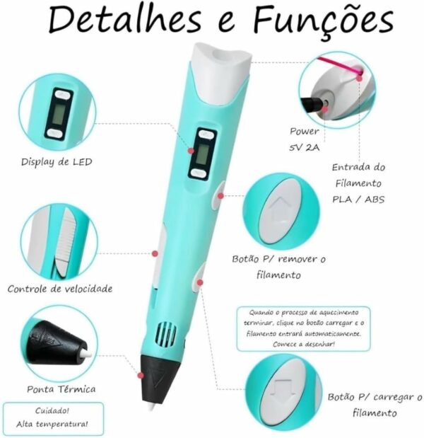 Esta caneta de pintura 3D é muito conveniente e segura ao desenhar e também fornece extrusão precisa e estável. Basta conectar a fonte de alimentação e inserir o filamento PLA no orifício depois que a caneta 3D for aquecida. O design da tela LCD não só mostra os tipos de materiais usados (ABS ou PLA), mas também mostra a temperatura, para uma operação mais suave e criação infinita.