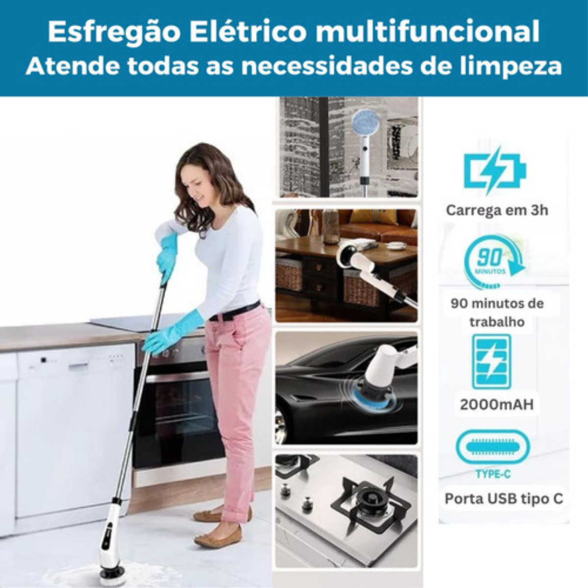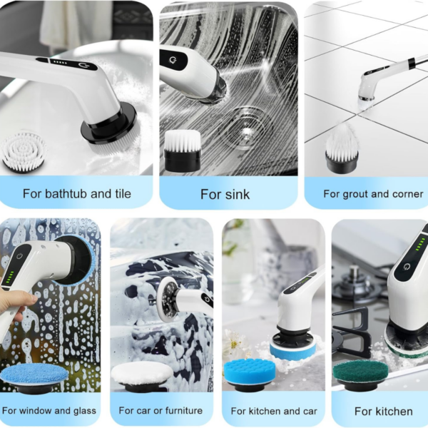– Acessórios intercambiáveis: Permitindo que você adapte a escova para diferentes tarefas de limpeza, como áreas pequenas, cantos ou superfícies delicadas.